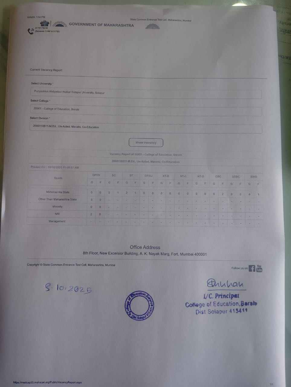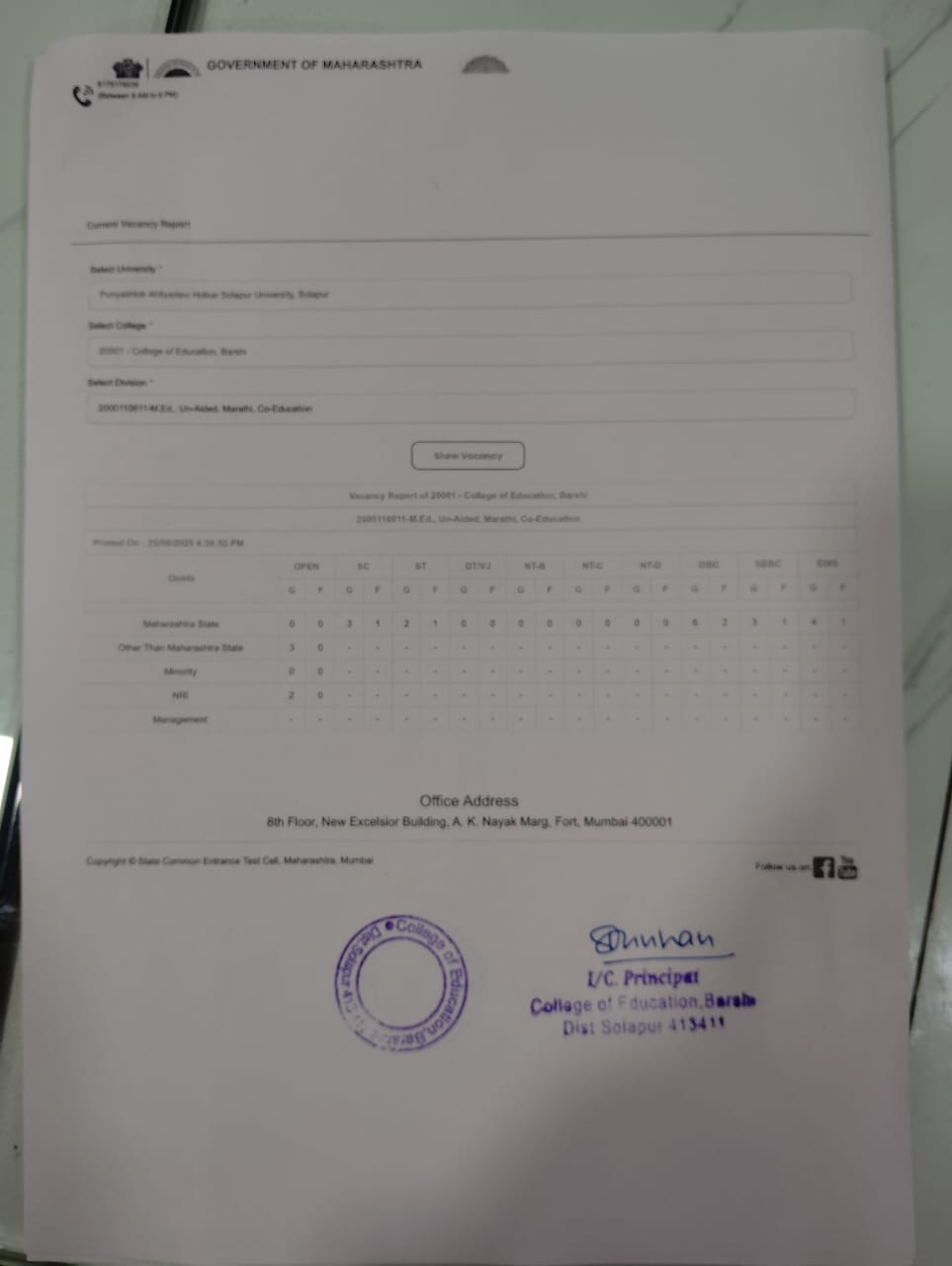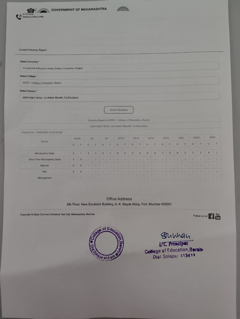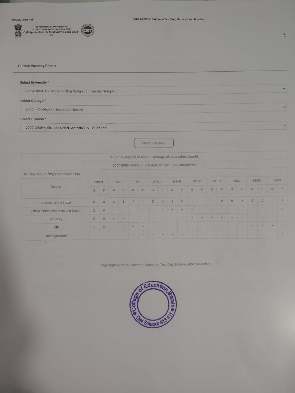 Vacancy Report M.Ed after Institution round 2025-26 Click Here |